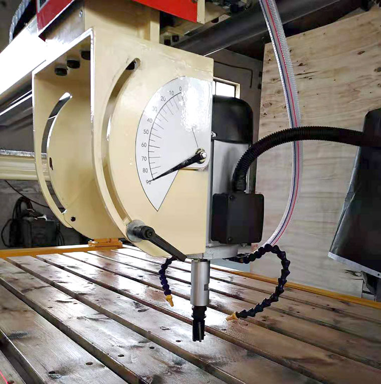 This machine can achieve three-axis linkage and manually adjust the saw blade 0-90 degrees through 4-axis B to achieve various complex stone processing; Its device functions include cutting edges, chamfering, grinding edges, digging various table faces, carving, etc. This machine is an ideal equipment for processing kitchen countertops